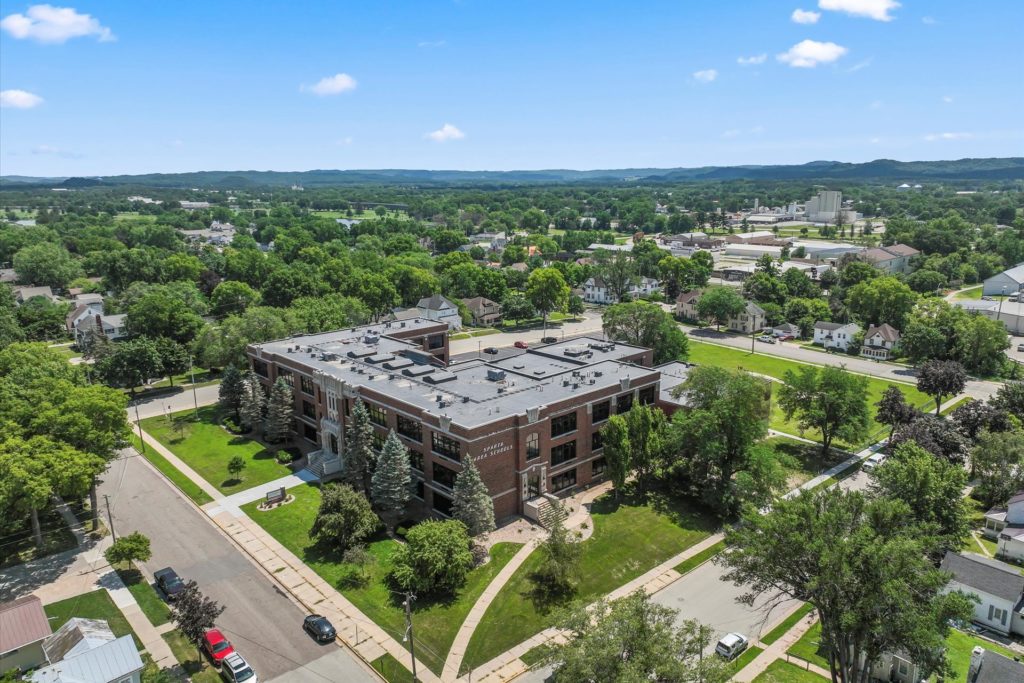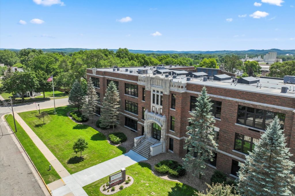 This historic adaptive-reuse design offers spacious, unique floor plans with extra storage, original flooring, windows, chalkboards, and built-in cabinetry. Shared spaces include a large community room with a kitchenette, and business and fitness centers.